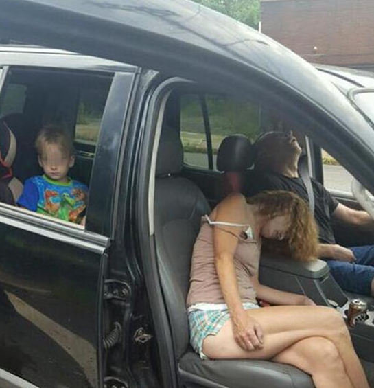 图为去年9月,俄亥俄州的一对夫妇嗑药过度,在半昏迷的状态下飙车,后座的孩子被吓傻。
