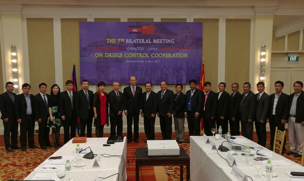 中国禁毒网讯 5月11日,第七届中柬禁毒合作双边会议在柬埔寨金边召开,国家禁毒委员会常务副秘书长、公安部禁毒局局长梁云率公安部禁毒局、黑龙江省公安厅禁毒总队有关部门负责人参会。柬埔寨国家禁毒委员会秘书长密斯将军主持会议并致辞,柬方警察、卫生、移民、海关等部门20余人参加会议。