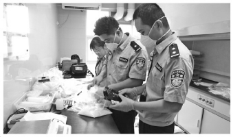 图为海关缉私警察拆包称重、检测毒品。 关悦 摄