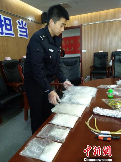 11月9日,辽宁省沈阳市公安局浑南分局破获公安部督办特大跨省团伙贩毒案,缴获冰毒6公斤,抓获30名涉案嫌犯。图为警方展示缴获毒品。 朱明宇 摄