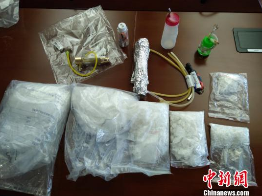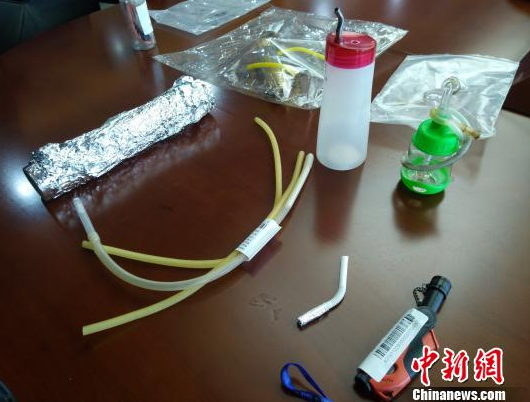 11月9日,辽宁省沈阳市公安局浑南分局破获公安部督办特大跨省团伙贩毒案,缴获冰毒6公斤,抓获30名涉案嫌犯。图为吸毒工具。 朱明宇 摄