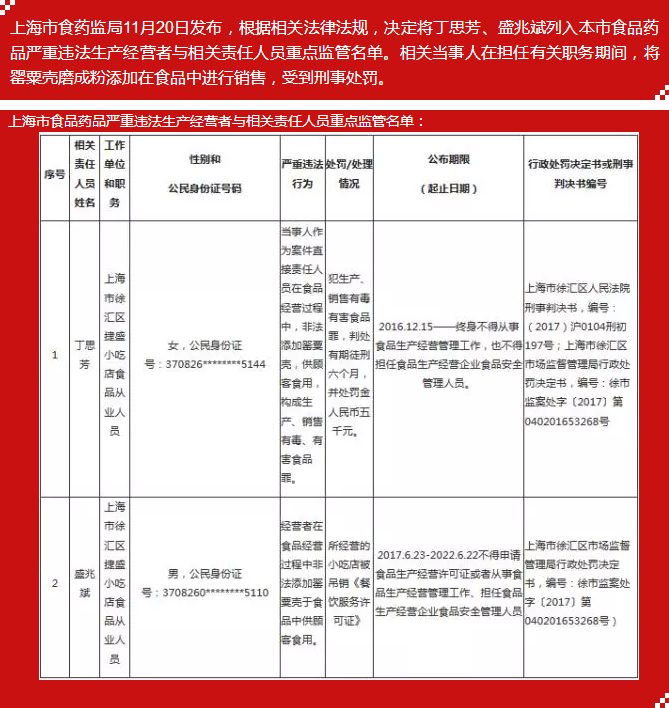 安全|小吃店在麻辣烫中加罂粟壳,两人被列入上海食品安全黑名单