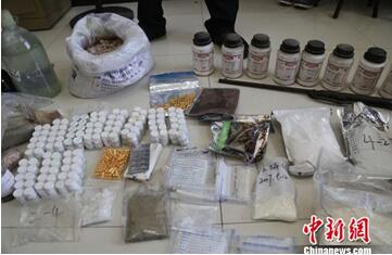 “2017.7.14”部督特大网络制贩毒案,吕梁警方捣毁制毒加工厂3处,缴获各类毒品9.5公斤、100斤制毒原材料和大量制毒设备。 警方供图