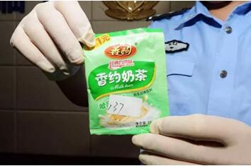 这批“奶茶”看起来和市面上零售的速溶奶茶区别不大,呈白色粉末状,冲调后即可吸食,而且味道香甜。但如果仔细看,就会发现这些“奶茶”包装粗糙,上面也没有生产日期、成分说明和食用方法等标注。