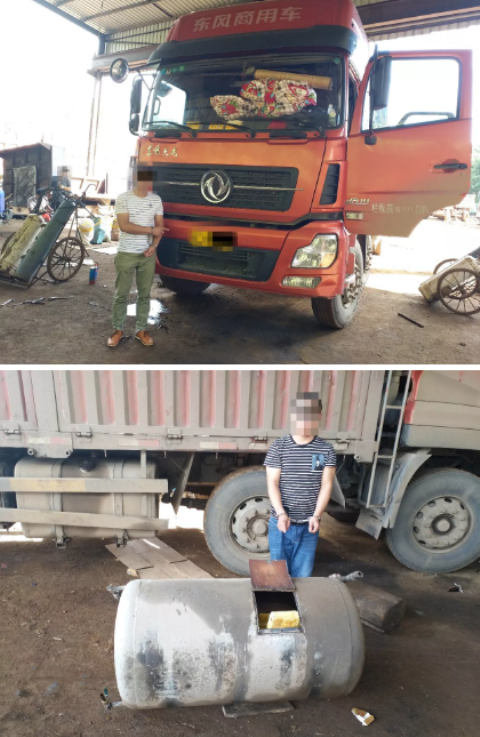 9月19日凌晨6时许,专案组通过缜密侦查发现一辆嫌疑大货车从镇康县南伞镇出来驶往耿马县孟定镇方向。当日8时许,专案组民警将牌照为赣C嫌疑大货车在耿马县孟定镇大湾江路被成功拦下。经对该嫌疑车进行全面检查,发现右侧水箱底部有改动痕迹,经进一步拆检,从赣C大货车右侧水箱内查获了毒品甲基苯丙胺片剂(冰毒)123包,后经称量净重68.851公斤,随即将驾驶大货车运输毒品的犯罪嫌疑人李某明、胡某平抓获。而后,在昆明长水国际机场抓获了在前面负责指挥运毒的马仔傅某斌,该案的告破,抓获犯罪嫌疑人3名,缴获冰毒68.851公斤、运毒大货车1辆。