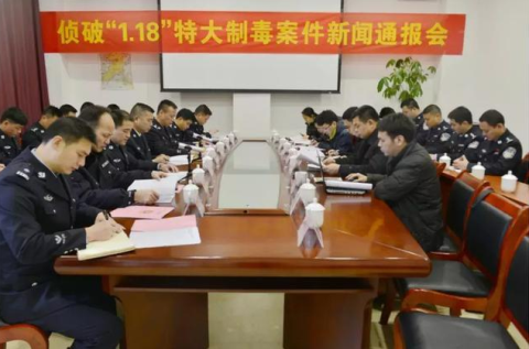 1月30日上午,来宾市公安局“1.18”特大制毒案件新闻通报会在金秀举行,市公安局党委委员、副局长黄瑞标向媒体通报:经过1个多月的前期摸排,精心经营后,1月18至25日,来宾、金秀市县两级公安机关专案组连续奋战七昼夜,成功捣毁了一个特大制毒窝点,抓获涉案人员13名,共查获冰毒成品224.70077千克,半成品652.353千克,制毒化工原料、配剂14323千克,查封制毒设备、工具一批,查扣制毒运输车5辆,扣押毒资7万元,缴获军用手雷1枚。