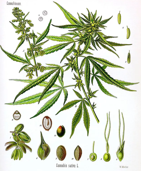 大麻的科学绘画。