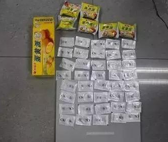 这是今年2月广东深圳铁路警方查获的毒品,其外壳是蛋黄派,小包装之中则隐藏着“奶茶”毒品,竟然耍的是双重伪装的花招,其真实身份,则是可能让你终身与尿布为伴的氯胺酮!