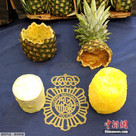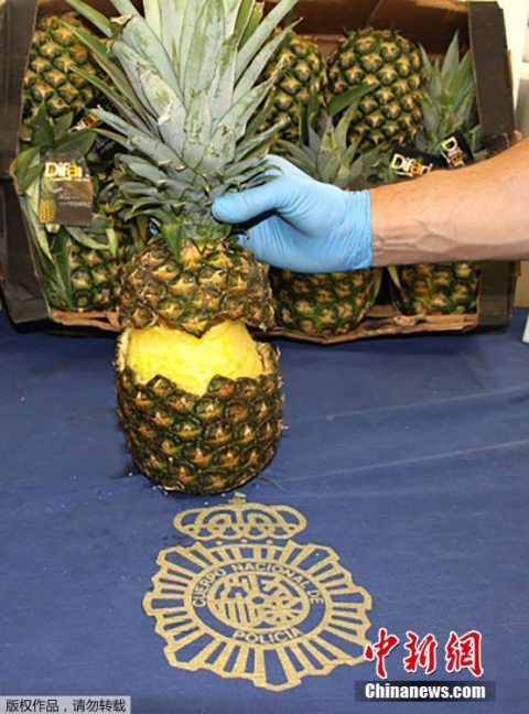 毒贩用新鲜菠萝藏毒品 被西班牙警方一举查获