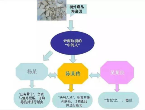 该团伙主要由陈某传(男,55岁,玉州区人)、杨某(男,48岁,玉州区人)、吴某良(男,62岁,玉州区人)等人组成,由陈某传和杨某负责与境外联系、订购毒品,境外方面将毒品经由云南边境的“中间人”运输回来,交与陈某传、杨某、吴某良等进行贩卖。该团伙分工明确,且具有极强的反侦查意识,给警方的调查带来了极大的难度。