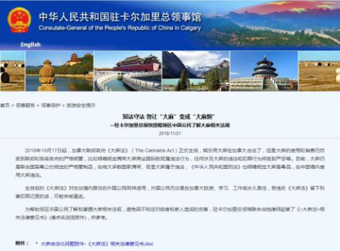 为帮助领区中国公民了解和掌握大麻相关法规,避免因不知法对自身和家人造成的伤害,驻卡尔加里总领馆联合当地律师起草了《<大麻法>相关法律意见书》供参考。