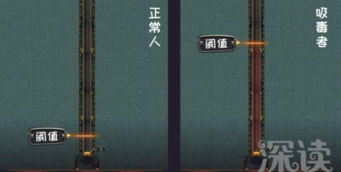 只有吸毒,才能暂时缩小这个差距,让人快乐一下。 可是每一次吸毒,阈值就会升高,多巴胺就会减少。