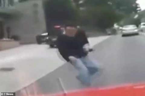 撞向汽车的人。