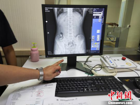 X光片显示冯某身体里藏有多粒没有排完的颗粒状物体。警方供图