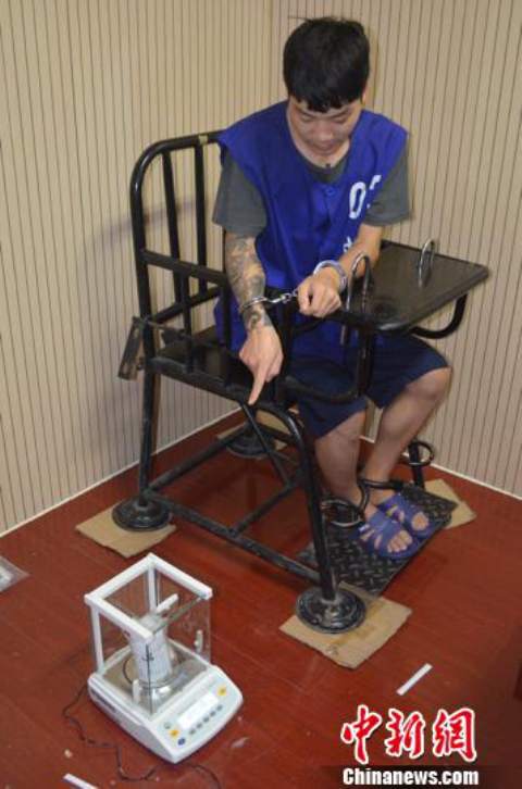 图为正在给冯某携带的毒品称重。警方供图