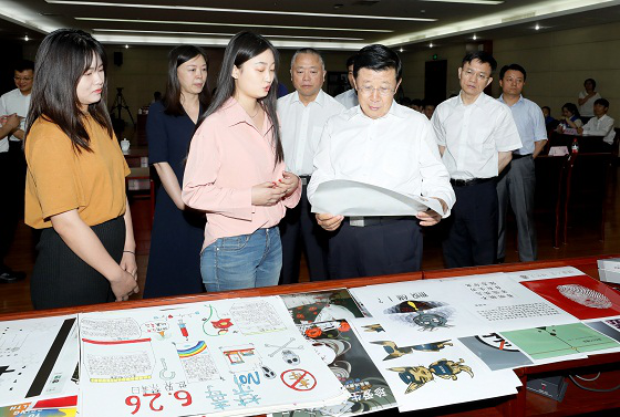 赵克志还认真观看北京市校园禁毒文化作品展示,与创作这些作品的同学们亲切交谈,称赞他们的作品设计新颖、寓意深刻。丰富多彩的校园禁毒文化作品,朝气蓬勃的青年禁毒志愿者队伍,充分体现了青年学生强烈的社会责任感和良好的精神风貌。赵克志希望大家继续以饱满的热情开展禁毒宣传教育,不断创新宣传教育形式,丰富宣传教育内容,让广大人民群众特别是青少年深刻认识毒品危害,并带动更多的青少年关心、支持、参与禁毒工作,踊跃参与禁毒公益事业,切实形成全民禁毒的浓厚氛围。