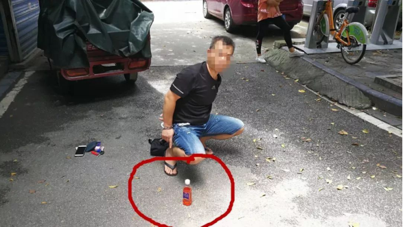 广西桂林阳朔警方近期“神猫行动”抓捕了一名最裸水(桂林方言,表示脏、乱、恶心等)的毒贩,他贩卖毒品,全靠自己一口一口吐,装满了大半瓶之后再贩卖给他人。