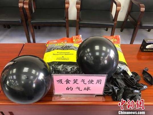 警方查获的吸食“笑气”使用的气球 吕盛楠 摄