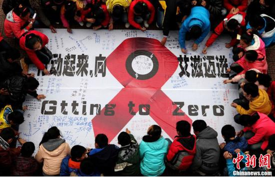 资料图:市民在抗艾滋病宣言上签名。程千俊 摄 图片来源:CFP视觉中国