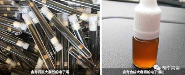 这种“大麻电子烟”长度大概30cm左右,外形为无色、黄色至褐色粘稠液体,与普通电子烟外表看起来无多大差别,常出现在酒吧、KTV等娱乐场所,往往一群人聚在一起吸食,因外表酷似普通电子烟而具有极强的迷惑性。