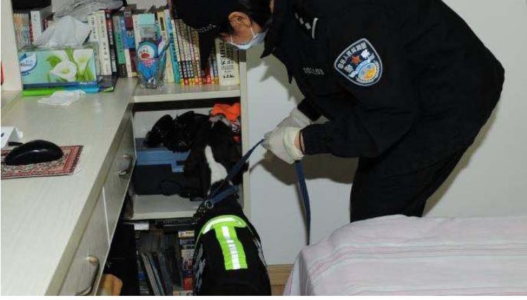 根据抓捕预案,市公安局刑侦总队十支队携带搜毒犬赶赴现场勘查,警犬“波尼”和“维尼”到达现场后,快速对房间内的各个部位进行仔细的现场搜索,最终在嫌疑人暂住地一隐蔽处,查获若干可卡因。