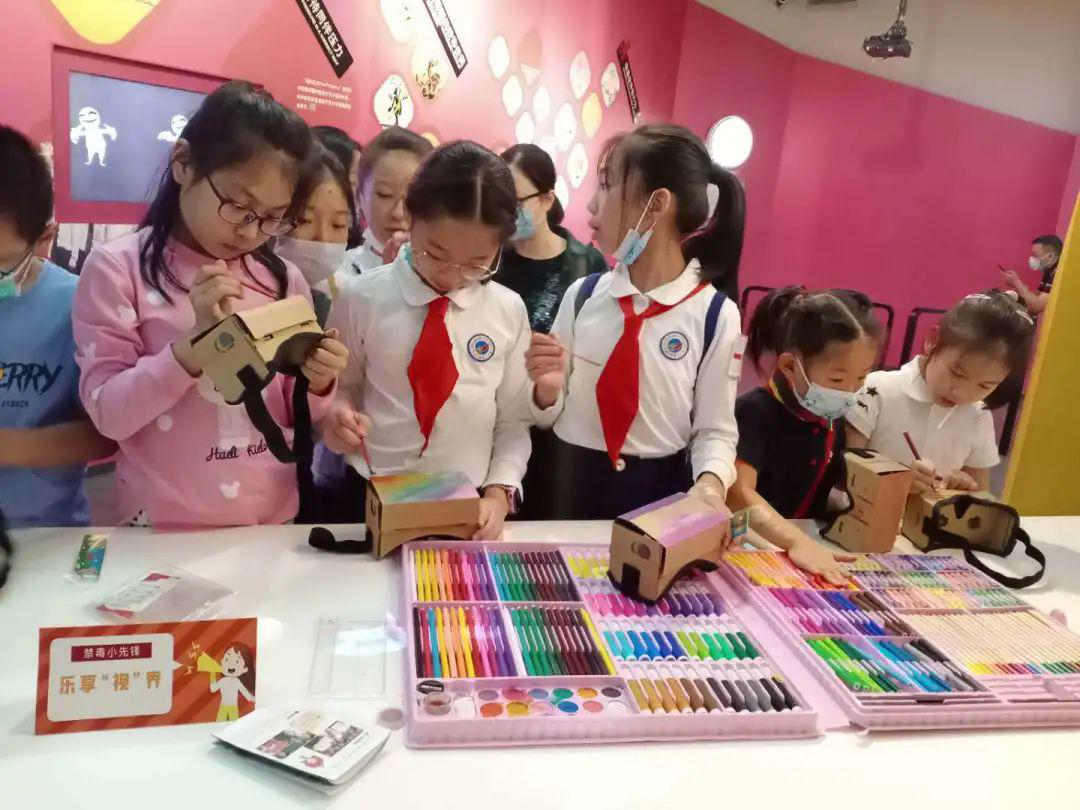 在“科技绘生活”板块,青少年用3D打印笔制作无人机、缉毒犬、缉毒车、x射线人体查毒设备等作品。工作人员向参观者讲解了无人机利用罂粟特殊的红外线反射原理,搭载红外成像设备识别罂粟的过程,科普了x光人体查毒设备利用毒品或违禁品与人体密度不同的特性,鉴别人体内是否隐藏毒品的原理。青少年参观者还参与动手制作VR眼镜,结合禁毒云展馆,身临其境感受“乐享视界”。