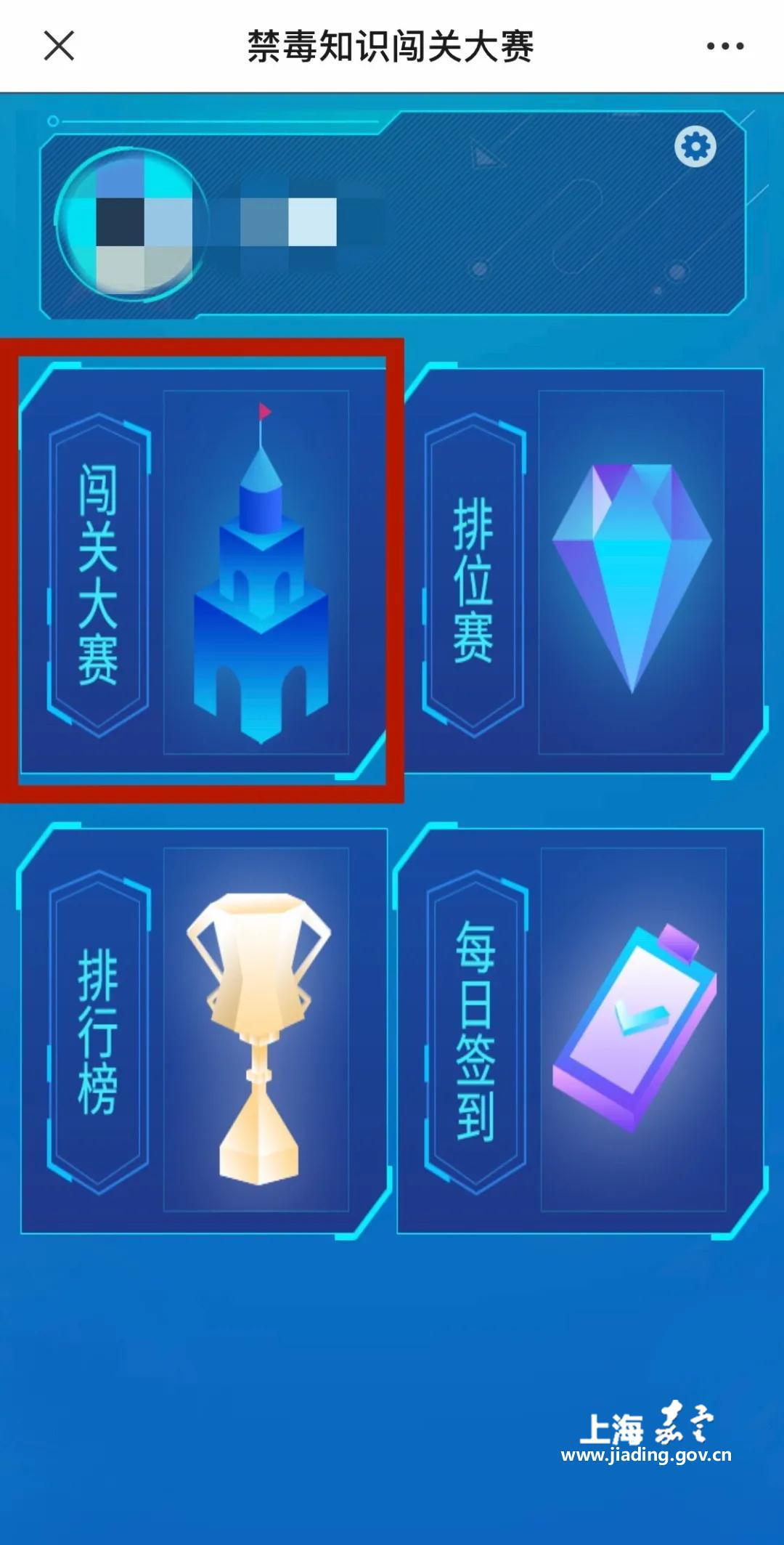 进入 “ 上海市禁毒科普教育馆” 公众号并点击“ 云闯关”菜单栏