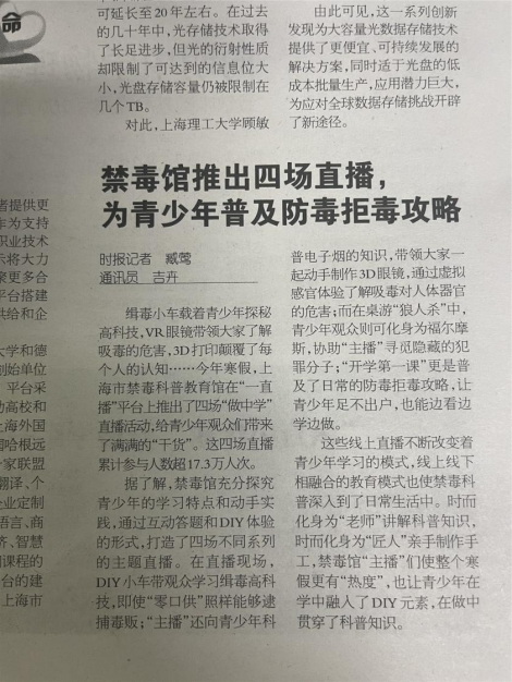禁毒馆推出四场直播,为青少年普及防毒拒毒攻略