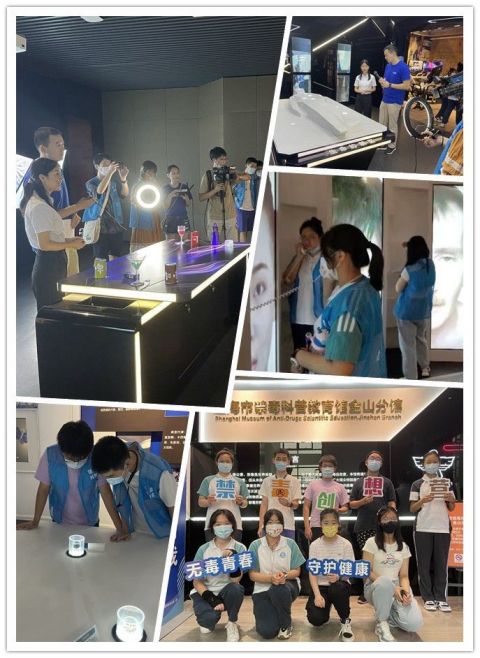 有一群青春洋溢、活力四射的高中生志愿者,他们时不时驻足讲解,还出现在上海市禁毒科普教育馆金山分馆,干起了沉浸式直播,摇身成为“00后”禁毒代言人。这9位学生分别来自交大附中、七宝中学、嘉定一中等5所示范性高中,短短一小时的直播体验,在话匣子APP和阿基米德平台收获3万多点击量。他们不禁感叹,看似平静的生活之下,隐藏着很多不为人知的毒品陷阱。一杯看似普通的饮料,便能让人陷入昏迷;一个来路不明的邮递物品,也有可能惹上麻烦;一包网红减肥药,更有可能会将生命永久定格……潜伏的危机,藏在生活里的每一个细节当中!当然,再多的嘱咐也抵不上一次亲身的体验。