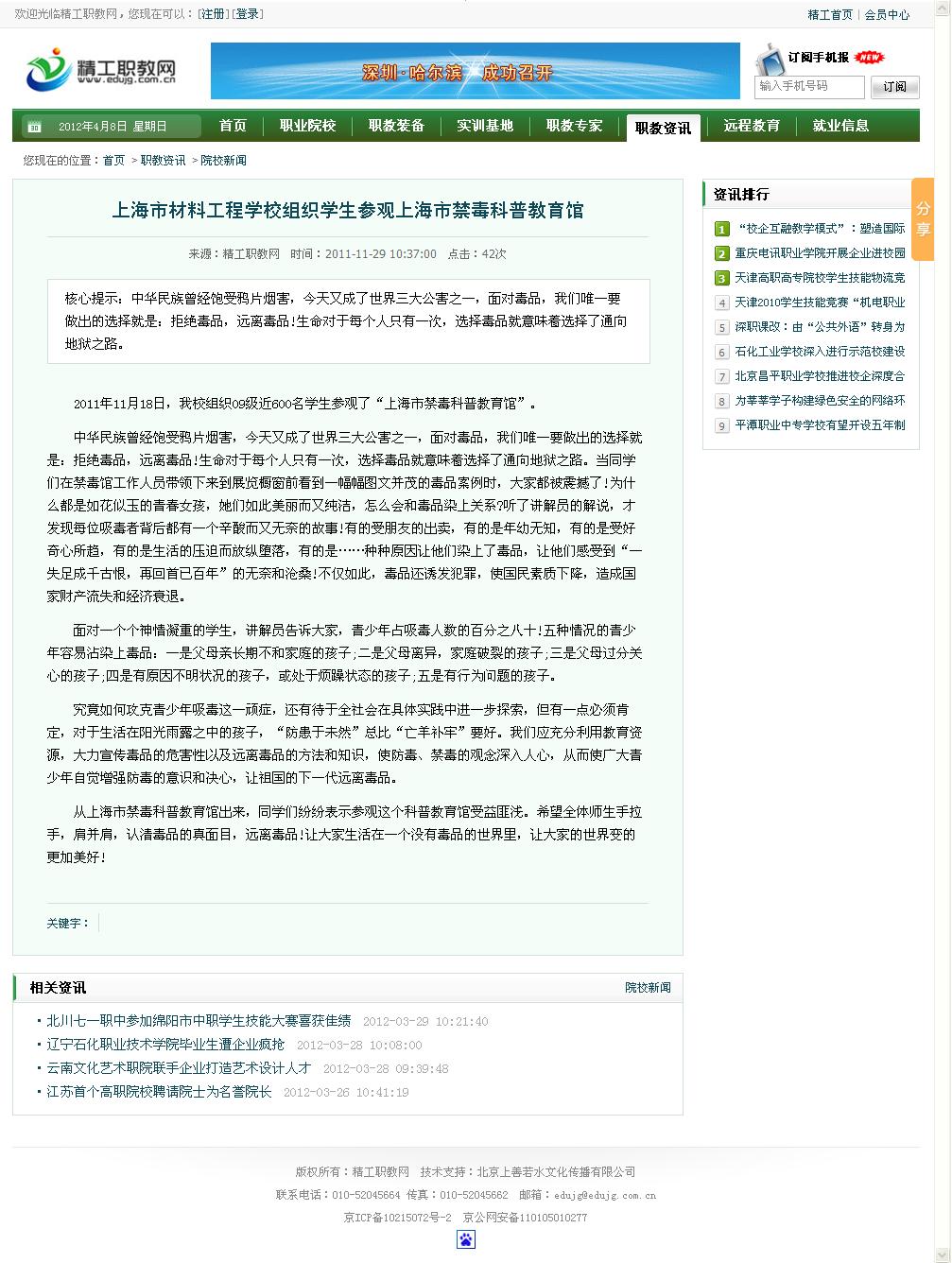 下一篇:长征镇禁毒办组织在校学生参观上海市禁毒科普教育馆 2011.11.30 (2011/11/30)