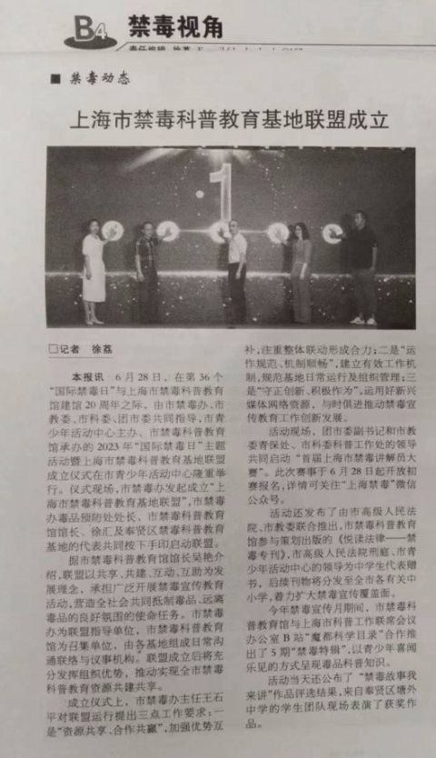 上一篇:上海市禁毒科普教育基地联盟今日成立(2023.6.30) (2023/8/30)