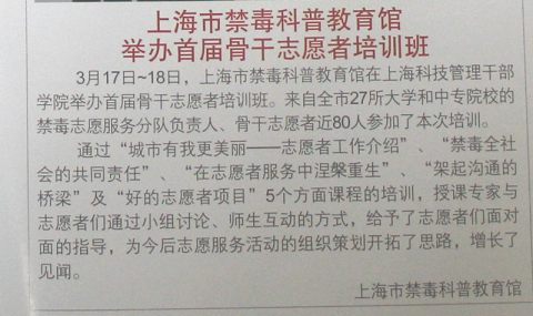 上一篇:上海市禁毒科普教育馆优秀志愿服务品牌评选活动顺利落幕《上海科普教育》2011年第4期(总第… (2012/6/8)