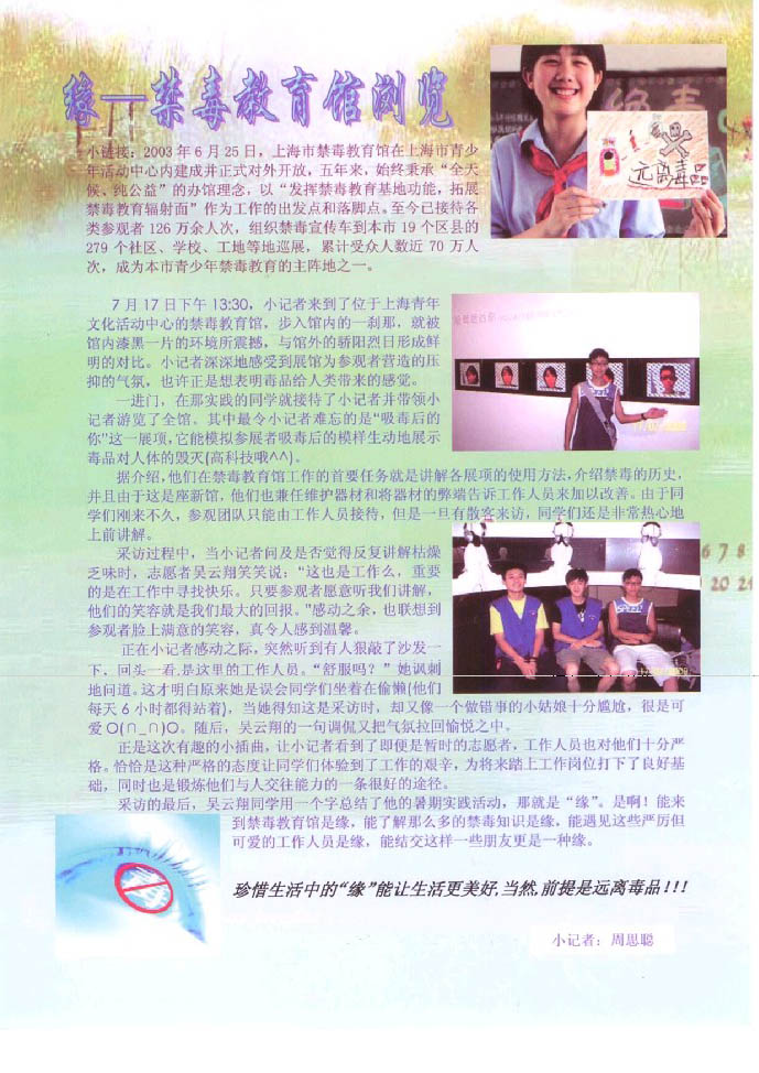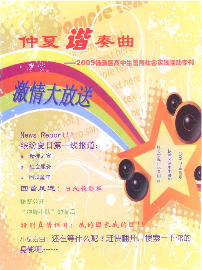 2009年杨浦区高中生暑期社会实践活动专刊 2009.7-8月号