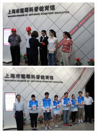 在国际禁毒日来临前夕,上海市禁毒科普教育馆举办2013年第一次志愿者服务证发证仪式,又一批参与上海市禁毒科普教育馆志愿服务满48小时的志愿者荣获了服务证。现场还举行了上海SMG法制频道的党员代表的入队仪式,为禁毒志愿者队伍增添了新的力量。作为媒体人,他们将利用独特的视角,敏锐的感知度,新颖的宣传形式,用镜头真实地反映毒品危害,社会禁毒成果,禁毒志愿者风采,为禁毒宣传、志愿服务领域带来新气象。市法学会禁毒法研究会会长、市禁毒科普教育馆专家顾问团成员、市禁毒办原主任周伟航出席发证仪式。