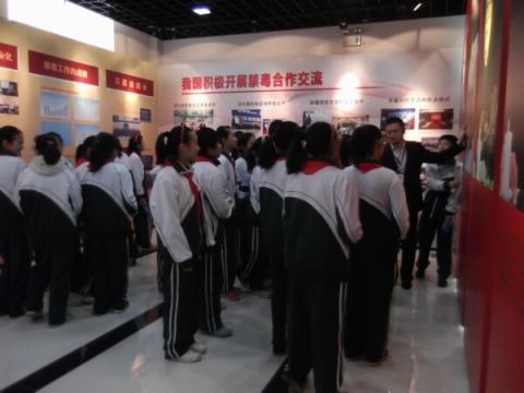 5月5日一大早,金山少年军校志愿者何有龙来到亭林镇亭新中学,带领该校的332名学生到上海市禁毒科普教育馆金山分馆参观学习,生动翔实的禁毒资料让学生们印象深刻。“青少年是毒品侵害的主要对象,我们常带学生来这接受教育。”何有龙说。