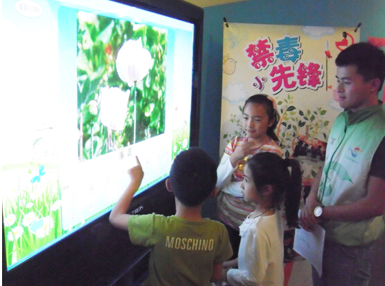 此次主题活动中,禁毒馆推出的“3D视觉艺术”尤为火爆。这种新颖的艺术形式,可让参观者通过巧妙站位,进入3D营造的立体空间,出现真人和画面融为一体的奇特效果。许多家长发挥想象力,为孩子们拍下具有教育意义的画面,并把3D合影照通过微信分享到自己的朋友圈,让更多的人了解禁毒知识。而在“毒品知多少”互动游戏区域,气氛也非常活跃。“罂粟、摇头丸、冰毒、大麻……”,青少年们在触摸屏前对着显示的毒品图片争先进行抢答。来自徐汇区的小徐同学在参观留言簿上动情地写道:“朋友们!请不要吸毒,好吗?不然林则徐爷爷会难过的”。