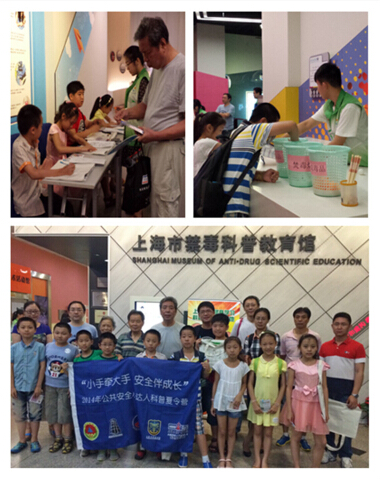 7月11日,由上海市禁毒科普教育馆携手上海消防博物馆、上海公安博物馆、上海民防科普教育馆和上海人民广播电台《安全进行时》栏目共同举办的 “小手牵大手,安全伴成长”2014年公共安全小达人科普夏令营活动正式开营。