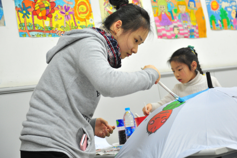 据了解,前来参与现场画伞展示活动的学生是“我心中的‘保护伞’——2014年上海市青少年学生创意绘画大赛”一、二、三等奖的获奖选手。活动现场,同学们拿起手中的画笔,在伞面上认真作画,一顶顶色彩鲜艳、充满创意的“保护伞”作品跃然伞上,表达了同学们对自我保护的理解和诠释。大家还纷纷撑起自己手中的“保护伞”展示留影,现场欢声笑语好不热闹。