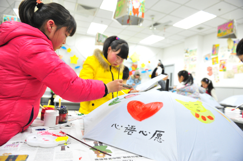 据了解,前来参与现场画伞展示活动的学生是“我心中的‘保护伞’——2014年上海市青少年学生创意绘画大赛”一、二、三等奖的获奖选手。活动现场,同学们拿起手中的画笔,在伞面上认真作画,一顶顶色彩鲜艳、充满创意的“保护伞”作品跃然伞上,表达了同学们对自我保护的理解和诠释。大家还纷纷撑起自己手中的“保护伞”展示留影,现场欢声笑语好不热闹。