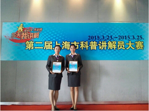 2015年3月25日,由上海市科学技术委员会主办的“爱科学秀科普,今天我讲解”第二届上海市科普讲解员大赛决赛在上海动漫博物馆举行,来自全市78家科普基地的188位科普讲解员参加了本次大赛。经过激烈角逐,本馆宣教员张琪获得大赛三等奖,并被授予上海科普使者称号,宣教员周颖被授予上海市优秀科普讲解员称号。