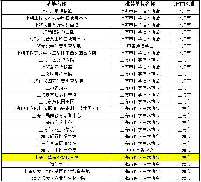 上海市禁毒科普教育馆被命名为《2015—2019年全国科普教育基地》