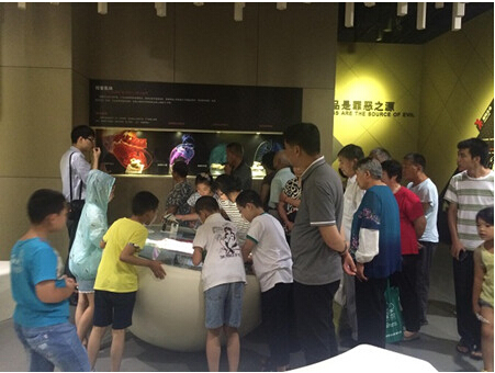 在讲解员的带领下,大家依次参观了“青春有悔”、“毒品就在你我身边”、“毒品是罪恶之源”、“毒品关乎民族存亡”、“戒毒是唯一出路”、“千万不要吸第一口”及“禁毒有我”七个主题展区。禁毒馆通过大量的案例剖析和调研材料,运用实物陈列、影视播映、图片展示、漫画表现、互动参与等现代展示手法和数字媒体技术,寓严肃的禁毒教育于生动的展示体验之中。居民们看着一幅幅令人胆战心惊的真实照片,听着一个个让人痛彻心扉的悲哀故事,内心感同身受,纷纷表示要自觉抵制毒品的诱惑。