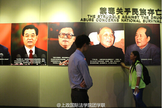 毒品关乎民族存亡,是当今社会不可忽视的重大问题。“小青柠”志愿者参观了展览墙上我国国家领导人对毒品的态度。