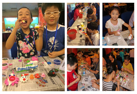8月12日下午,30个亲子家庭约70余人来上海市禁毒科普教育馆,一起参与“学科普,秀创意-------2015年科普小达人夏令营系列活动”之“玩转彩泥世界”彩塑DIY创意秀活动。