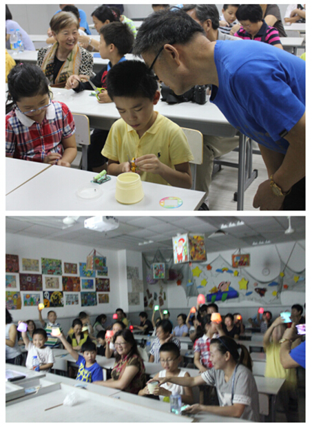 8月26日下午,28个亲子家庭约56余人来上海市禁毒科普教育馆,一起参与“学科普,秀创意-------2015年科普小达人夏令营系列活动”之“七彩阳光罐”动手DIY创意秀活动。