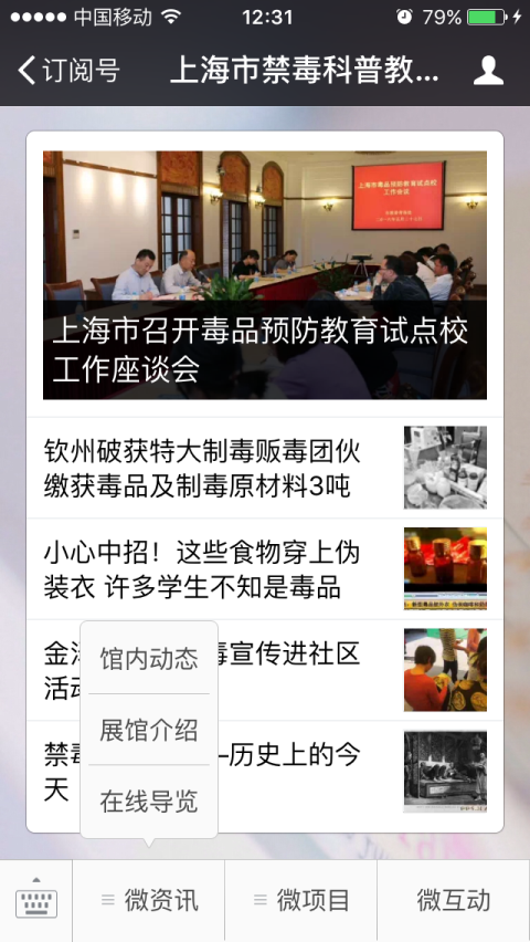 不管是在馆内边走边看,还是足不出户宅在家中,只需关注上海市禁毒科普教育馆公众微信,就能感受新媒体给科普宣传带来的无限可能。通过“在线导览”栏目,参观者将获得相应展品和展项的图片、内容以及由专业播音员录制的语音解说等详细介绍,体验“掌上导游”一对一的私人定制服务,更加直观、生动、全面地领略禁毒馆的独特魅力,更便捷地展开禁毒科普之旅。