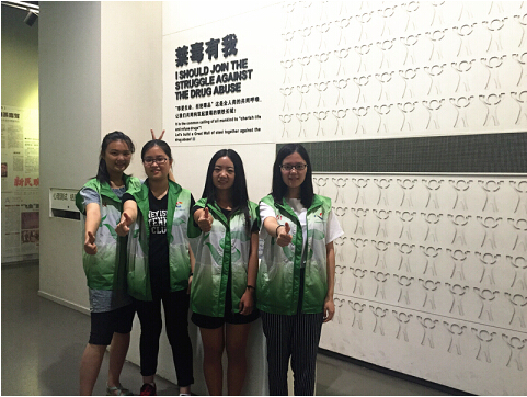 记得初到时姐姐耐心的向我们介绍场馆,记得初次讲解时姐姐小声的对我说声“加油”,也还记得每天告别时姐姐会逗趣的说声“同学们再见!”,尽管有时候会因为我们的小偷懒对我们训训话,但那一幕幕暖心的话语行动更让我难忘。除了最基础的巡馆工作,我们担任的是展馆讲解员,每天3小时的工作时间,让最初对于讲解还有些害羞无措的我,慢慢的敢拿起麦克风向游客们介绍自己所知的毒品知识。一次次的锻炼实践,让我慢慢适应,吸收颇多经验,最后,真心感谢工作人员哥哥姐姐们的照顾和指导。