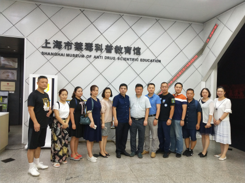 2018年8月28日,江苏省苏州市禁毒办副主任、公安局禁毒支队支队长杨暋昀一行9人来上海市禁毒科普教育馆参观考察。