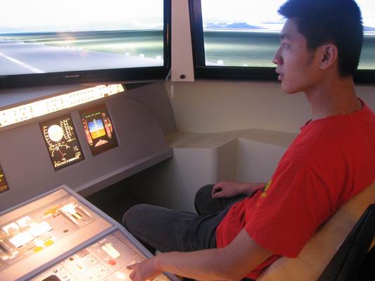 作为一名参观者,我很荣幸第一次尝试着“开飞机”; 在专业人员的详细讲解后,我按照步骤一步步的操作,成功地驾驶着飞机飞上蓝天。在整个体验的过程中,让我感受颇深:“做事要仔细、认真、负责”。