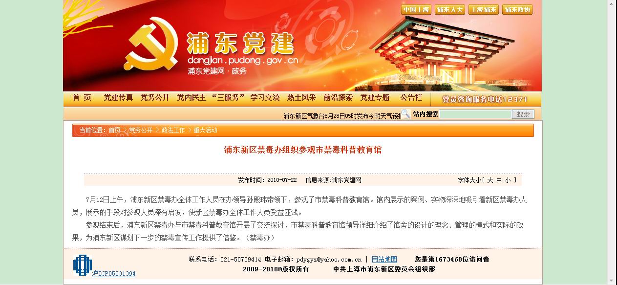 下一篇:上海市学校周边治安综合治理工作专栏-光明中学暑期开展禁毒科普教育活动 2010.7.26 (2010/7/26)